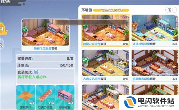 4、收集家具,在打开图鉴之后就可以看到单纯的收集一种家具,可能就会有额外的加成,如果玩家能够把一整套的家具全部的收集完,就可以获得不一样的加成。