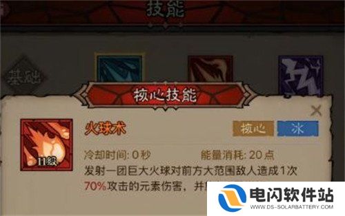 1、核心技能:火球术冰焰,一定要有橙核心,能弥补冰系的输出不够的缺点。