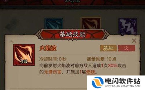 2、基础技能:火焰波爆破,增加易伤机制和增加伤害和燃烧。