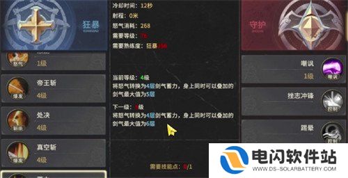 战士如果作为输出爆发流,他的技能搭配选择狂暴斩,可以给敌人造成物理伤害,命中一名敌人之后就可以提升10%的伤害,还可以快速的清理小怪物。