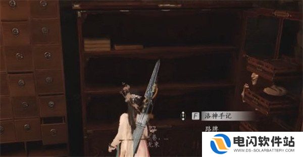 2、在弱水岸地下二层,找到书架上的《洛神手记》。