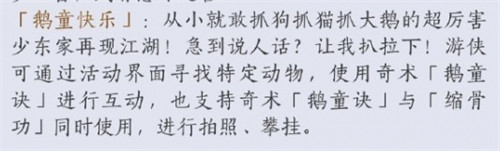 1、在鹅童节活动当中玩家们可以使用该奇术与指定的动物进行互动。