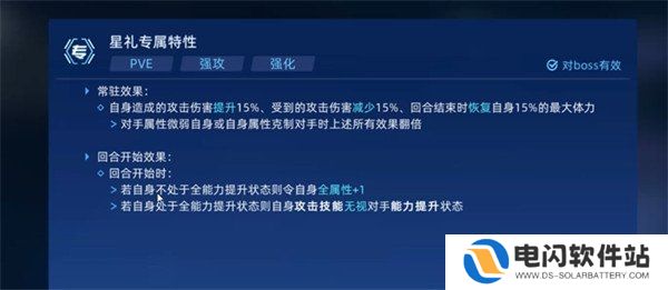 星礼的魂印效果设定极具策略意义。基础层面提供伤害提升、减伤与回合末回血的三重保障,而一旦进入属性克制或被克制状态,所有效果翻倍。