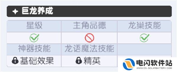 巨龙:仅适用星级、龙巢和龙语魔法技能(主角品德不生效)。