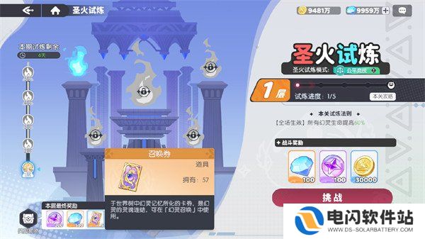 每通关一层可领取金币、钻石,第五层通关更可获神话召唤券!