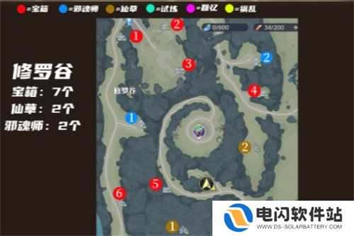 在修罗谷**有7个隐匿的宝箱,往往都是在不起眼的角落,就会隐藏着大家所想要的宝箱。宝箱中会有修炼秘籍,还有珍贵的魂导器,因此大家就可以根据数字的地点去寻找。