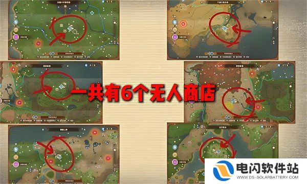 在地图上找到6处无人商店,每处均有对应的传送据点,便于快速移动。