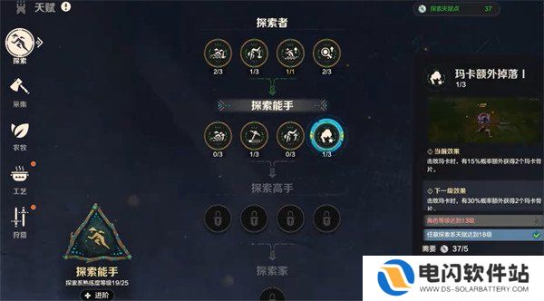 后续几排的探索天赋则可按自己的需要来点,没有固定的加点套路。例如,玩家要想提升玛卡骨片的掉落概率,可以考虑优先将点数分配给对应效果的天赋。但要注意天赋加点无法重置,所以各位最好在考虑清楚后,再为所想加的天赋投入点数。