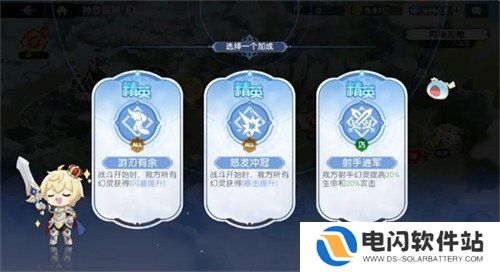 战斗胜利后可以选择加成加成有分为精英、史诗、传说三个等级,传说的效果通常比较好,但还是请优先依照自己的阵容选择需要的buff。