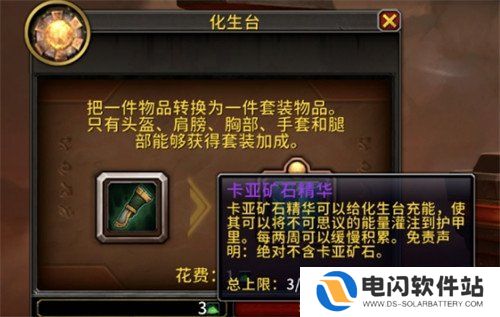 4、卡亚矿石精华这个道具每两周会提供一个,可以根据需要对自己的套装进行转换。