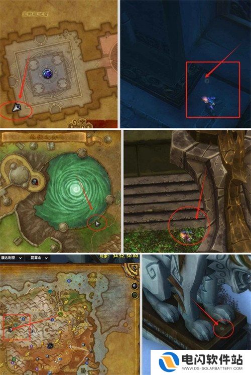 8、前往奥丹姆坐标(76.43,53.67),在在面对石像人的第二个事项处,右脚边找到第八张纸互动。