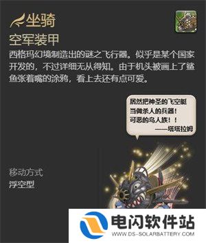 最终幻想14水晶世界游戏中有很多的坐骑可以让玩家们来获取,每个坐骑的获取方法都有所不同,一些玩家还在询问空军装甲怎么获取,今天小林将给玩家们带来关于空军装甲获取攻略。