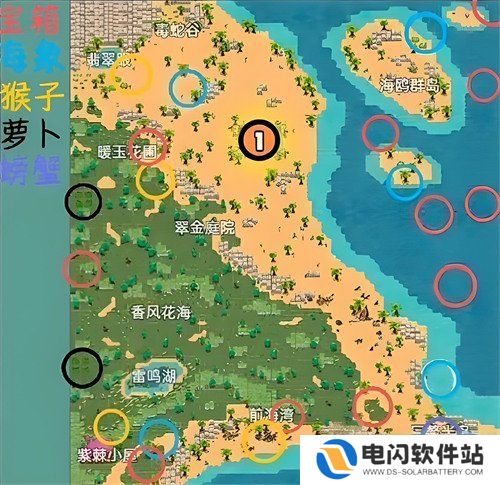 1、下图是海鸥群岛下方的一个小岛附近,这里的宝箱相对来说是比较集中的,不过怪物的数量也会较其他地方多一些。玩家要注意探寻环境。