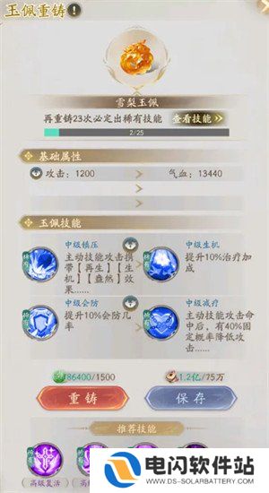 4、如果合成玉佩技能或者属性并不理想,可以通过玉佩重铸来更改属性和技能,重铸需要消耗一定的玉石和铜钱,玉佩品质越高,消耗的玉石和铜钱也越多。