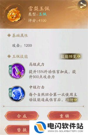 1、穿戴在侠客身上的玉佩通过点击可以进入玉佩界面进行合成或者重铸。