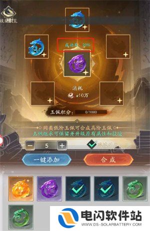 3、每次合成都可以获得一定的玉佩积分,玉佩积分达到1000时可领取一个橙色玉佩。