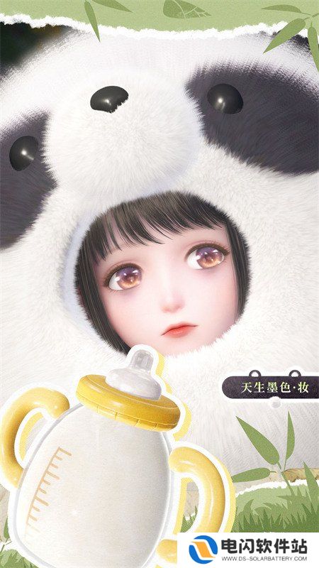 3、联动时装:四星服装【绒绒熊猫】、主属性【帅气】、四星底妆【天生墨色】、【大喵斗篷·熊猫】。
