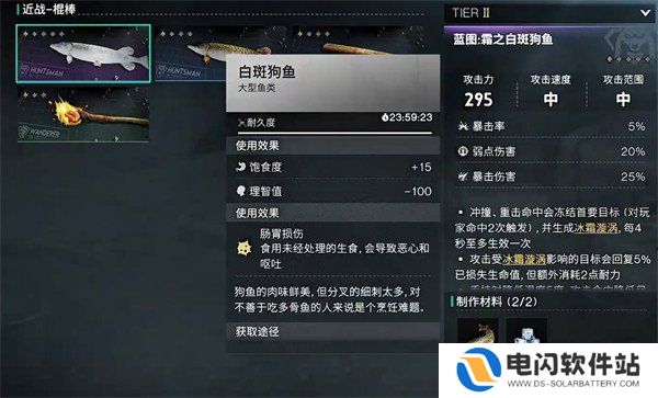 2、换好后就能在制作台用一条狗鱼和十个冰块来做出霜之白斑狗鱼。