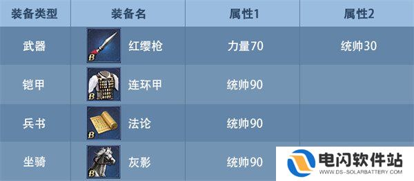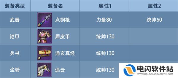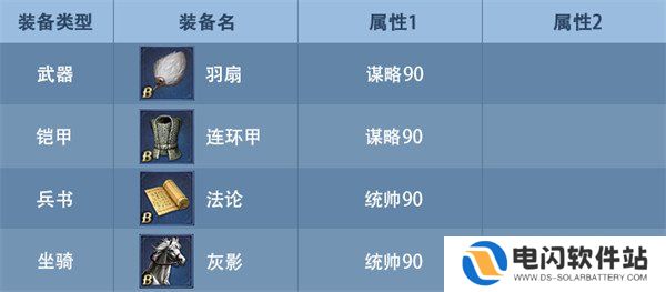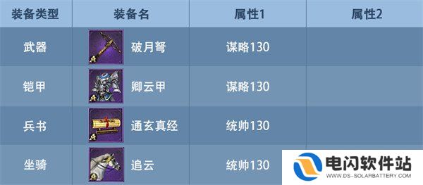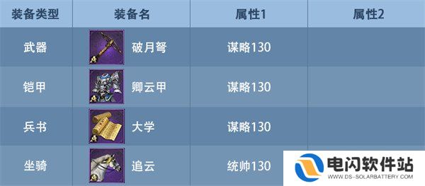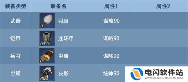 装备搭配:主谋略装,谋略越高 伤害越高。适当搭配统帅装,加厚血量。