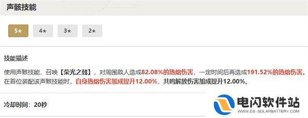 1、使用声骸技能,召唤【荣光之戟】,对周围敌人造成82.08%的热熔伤害,一定时间后再造成191.52%的热熔伤害。