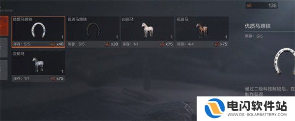 玩家马上找到管理员,在这里就可以找到动物马匹。如果想要看一下码的实际模样,也可以进入到里面查看,但要注意不能够直接拿走。每一匹马所要的价格就是75块废料,这个价格相对还是很便宜的,玩家在确定之后就可以购买。