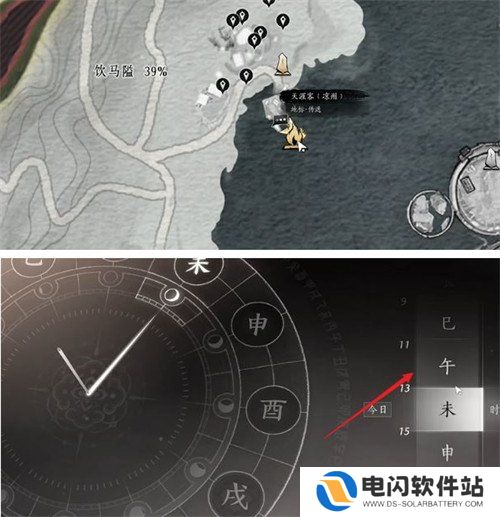 1、首先前往图中传送点,然后将游戏时间调整至白天午时。