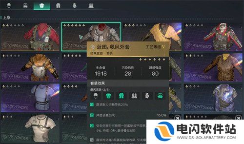 飙风套装在该游戏中一共有4件,玩家每穿戴一件就能够激活独特的效果。在游戏中,玩家获得了第1件标封装备的时候,它的翻滚消耗耐力将会降低20%。所以说玩家拥有了此装备之后会更加的灵活,也能够轻松的去躲避敌人的攻击,可以快速的调整位置。