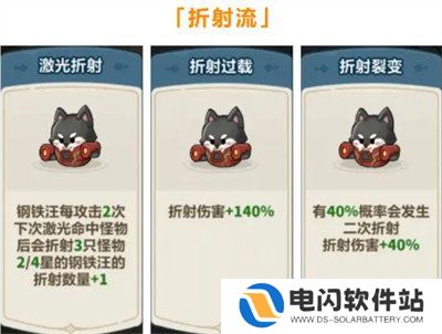2、「折射流」:折射流着重提升钢铁汪的AOE输出,擅长清扫战场,对小怪的收割效率拉满!
