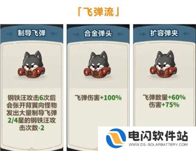 4、「飞弹流」:飞弹流的基础词条是「制导飞弹」,进一步选择【飞弹类】词条来增加飞弹数量、伤害。相较于「折射流」,由于单个飞弹伤害较低并且无法穿透怪物,因此在清理小怪方面较为薄弱。