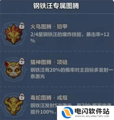 1、钢铁汪专属图腾效果分别是:「爆炸技能暴击率提升」、「激光数+1(概率)」和「攻速提升(概率)」