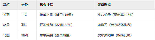 赵云+关羽双核触发多段伤害,马超提供攻速增益形成「蜀骑」体系
